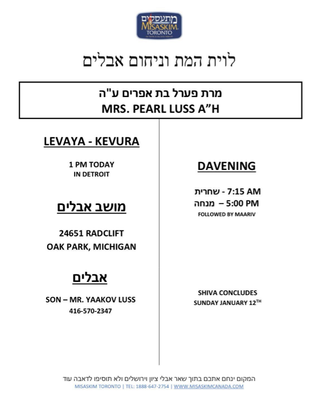 Mr. Samual Abraham Bidner Z"L Levaya Shiva